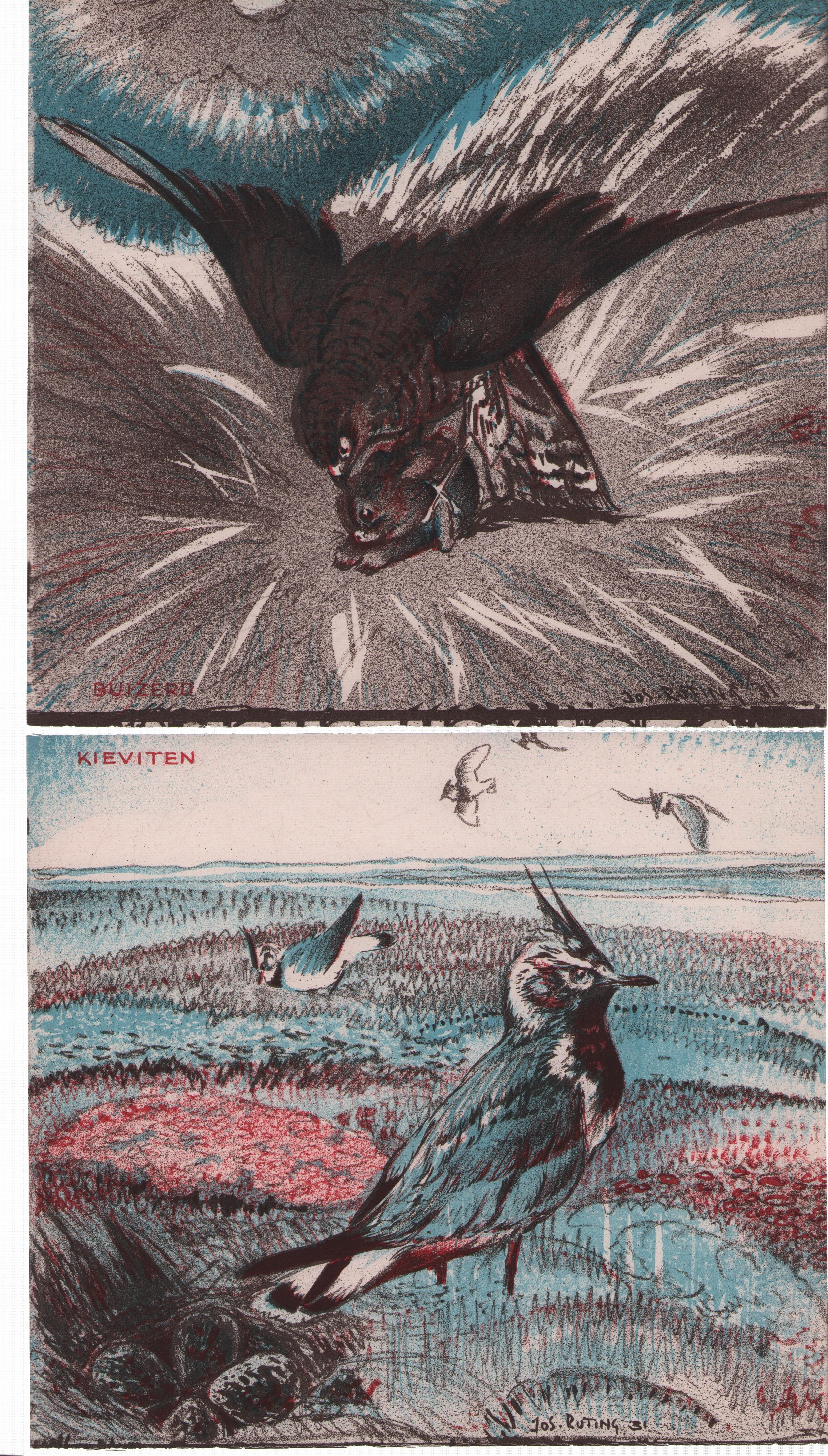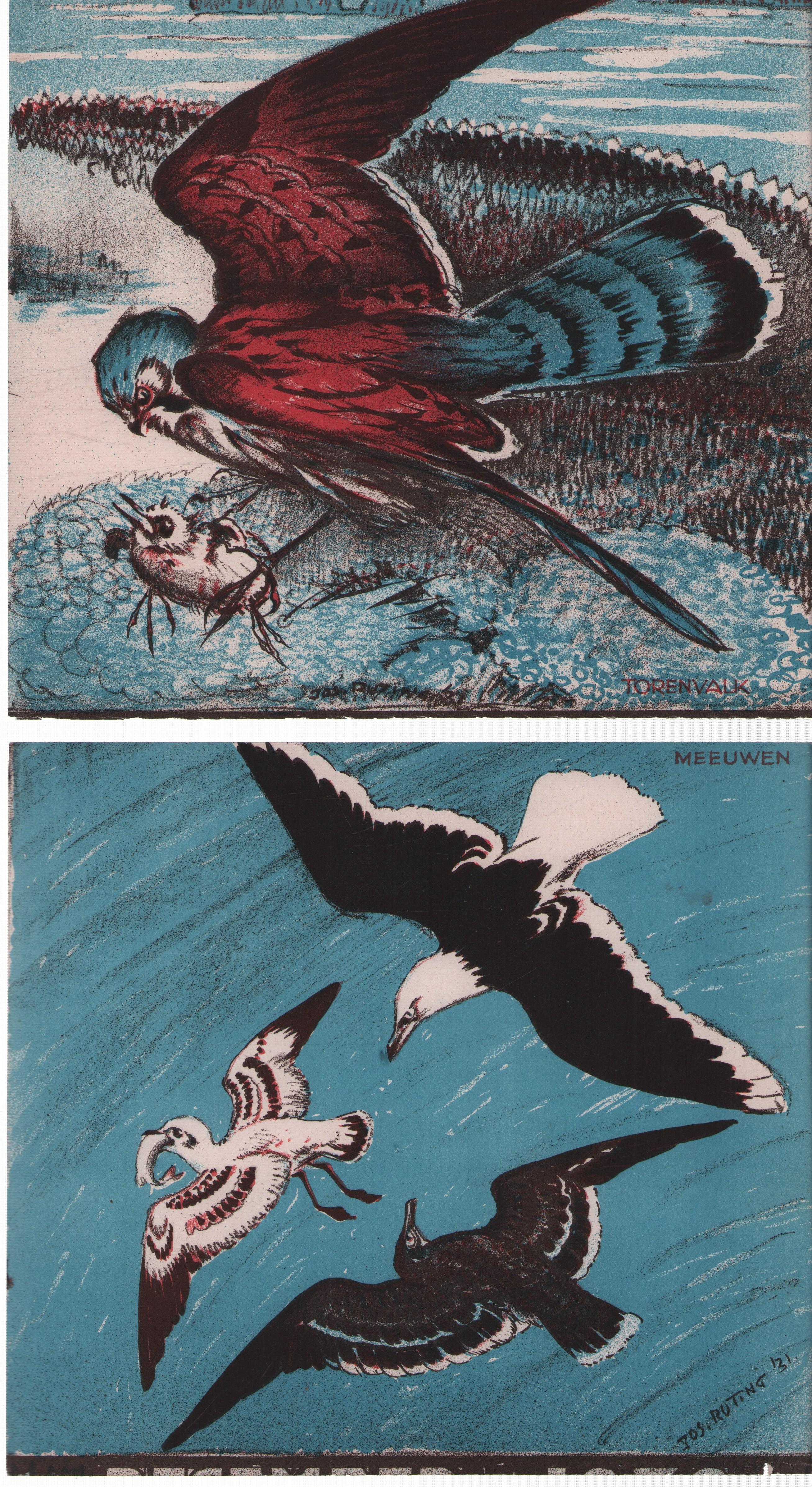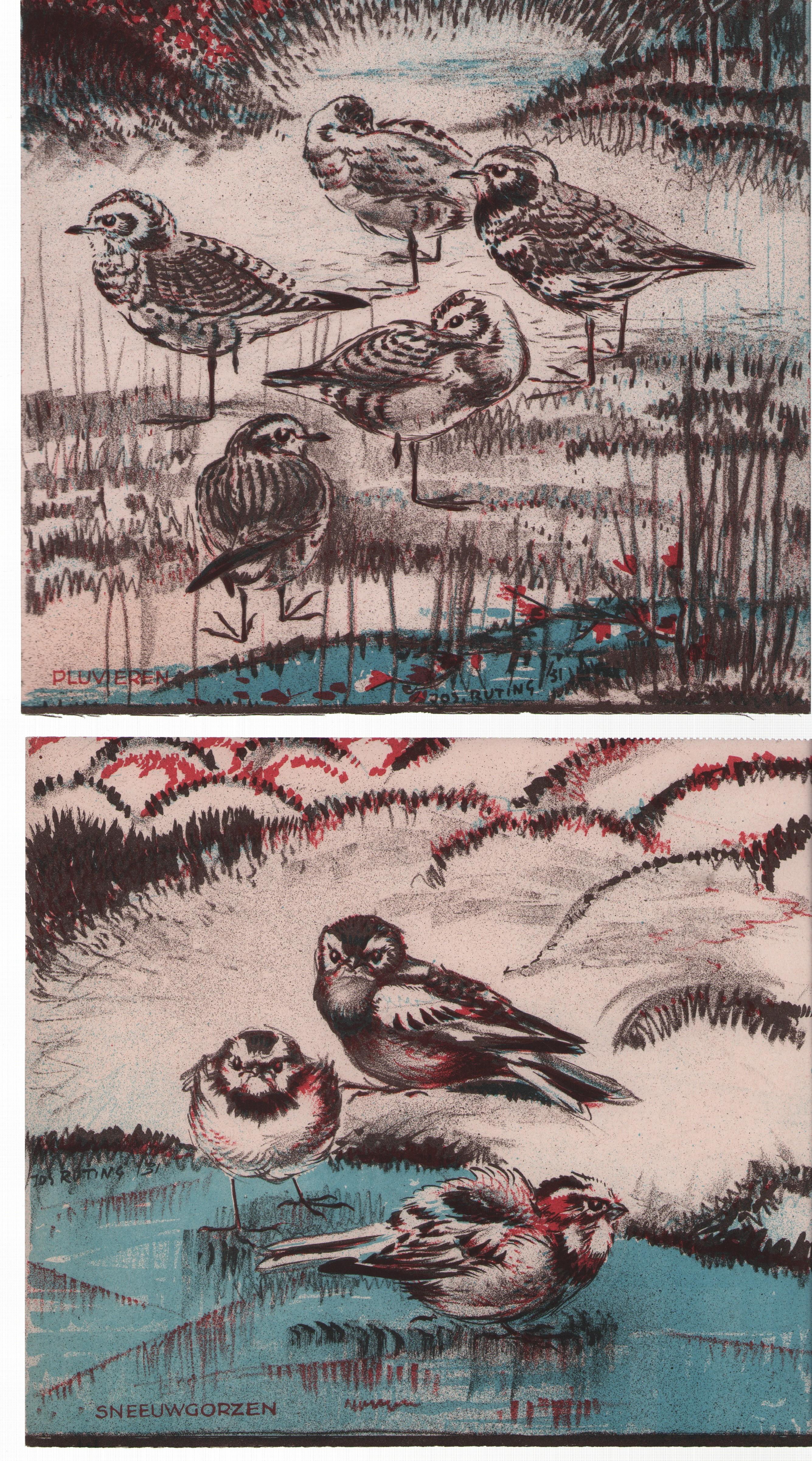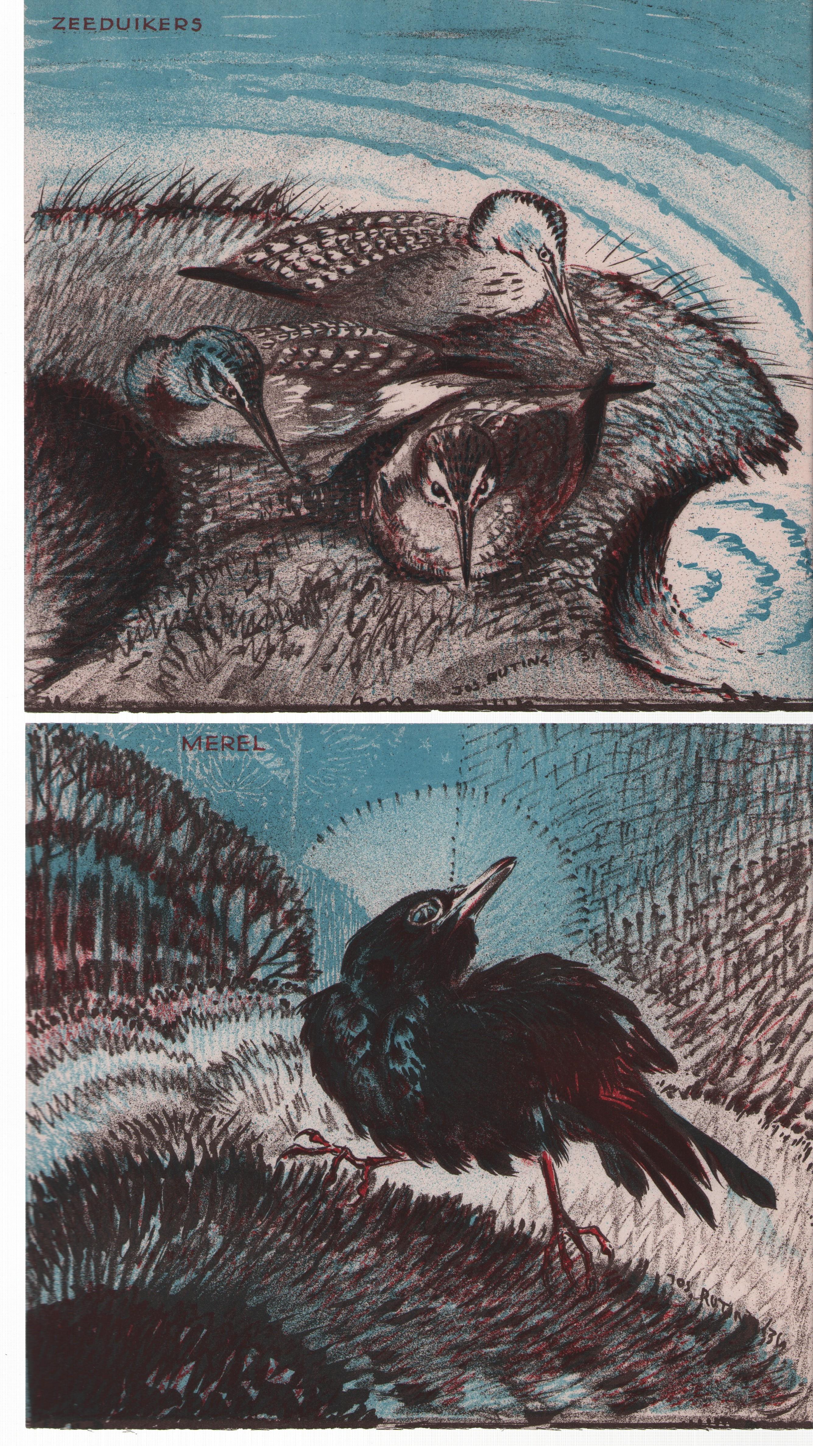 Waarschijnlijk uit een boek ? Kieviet - Buizerd - Merel - Zeeduikers - Meeuwen - Torenval - Blauwe Reiger - Bergeenden -Pluvieren -Sneeuwgorzen.